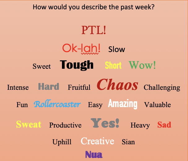 Start by asking: “In one word, how would you describe the past week?” Share the following and let them choose.