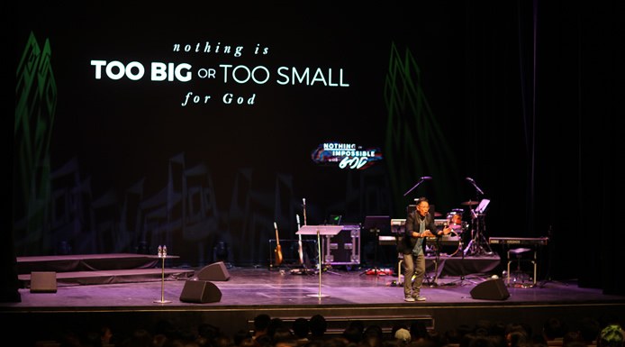主任牧师邝健雄的讲道信息强调与神共同达成更大的成就的重要性。我们要为艺术与娱乐界以及新加坡的青少年带来属神的影响。虽然这异象看起来似乎是一项艰巨的任务,但在神的眼中,坚信浸信教会并不算太渺小,佳伟传媒也不算渺小,而佳伟剧院绝对不渺小。